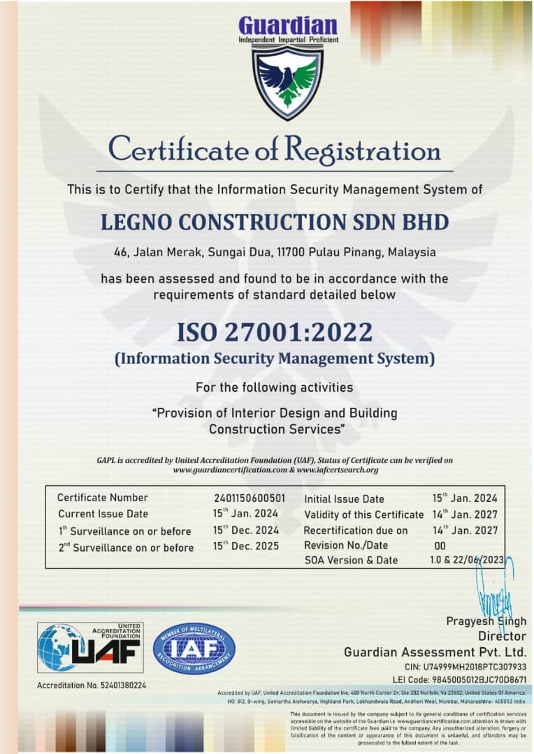 That’s why LEGNO is proud to be one of the very few interior design firms in Malaysia certified with ISO 27001 — the world’s leading standard for information security management systems (ISMS).