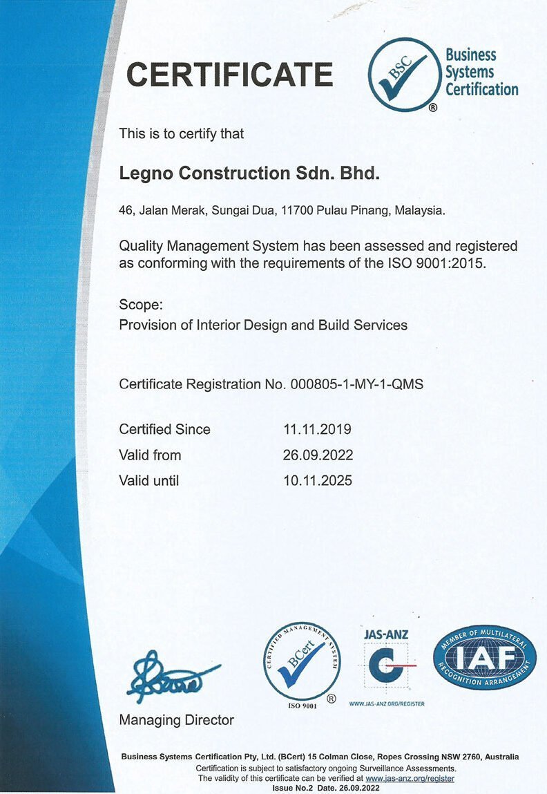 - LEGNO is proud to be among the few interior design and construction firms in Penang with a valid CIDB G5 certification — legally approved to manage renovation and construction projects worth up to RM5 million.