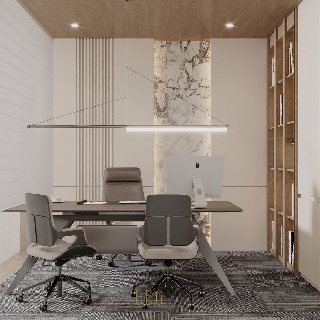 Every detail is crafted to bring warmth, comfort, and professionalism, striking the right balance so the office feels elegant for visitors, enjoyable for staff, and impressive for clients