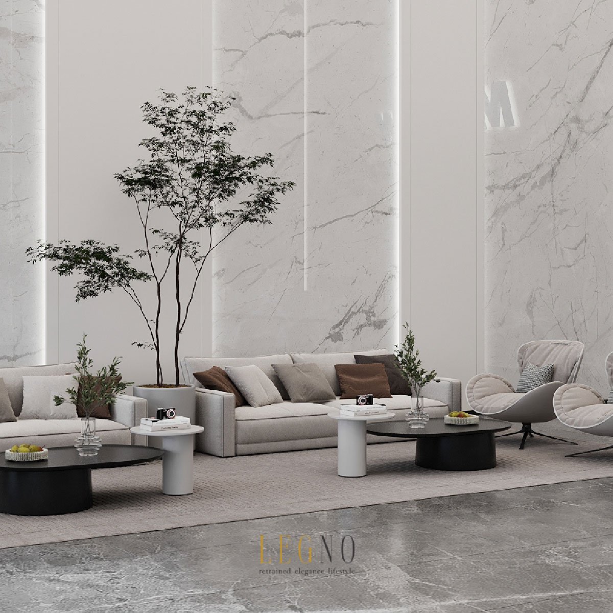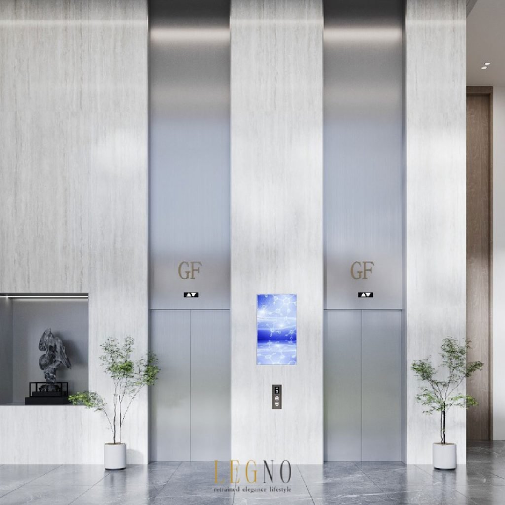 Clean vertical lines and soft lighting in a grand marble-clad lobby, creating an atmosphere of prestige and clam. Hoping that every guest are welcomed with the feeling of impressive and approachable🌟